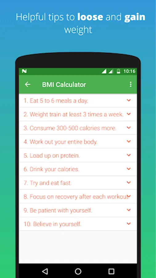 Ideal weight - app calculates the ideal weight you should gain.