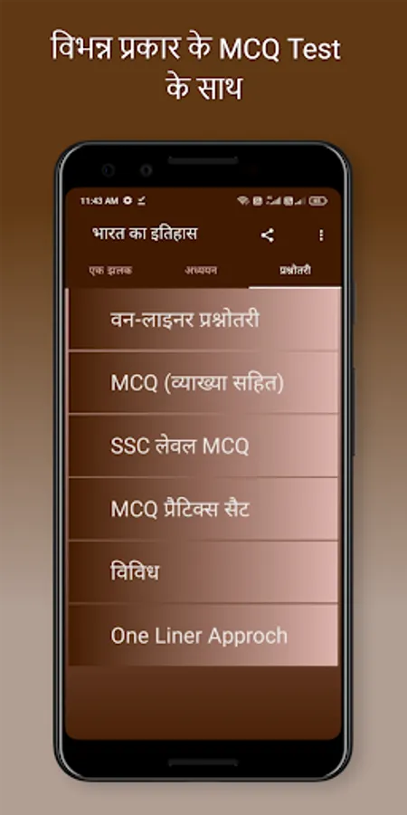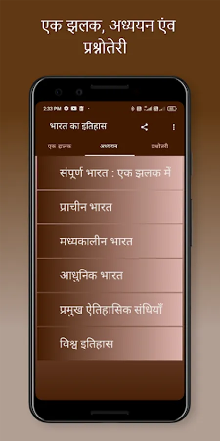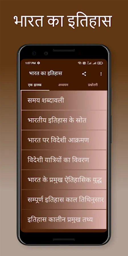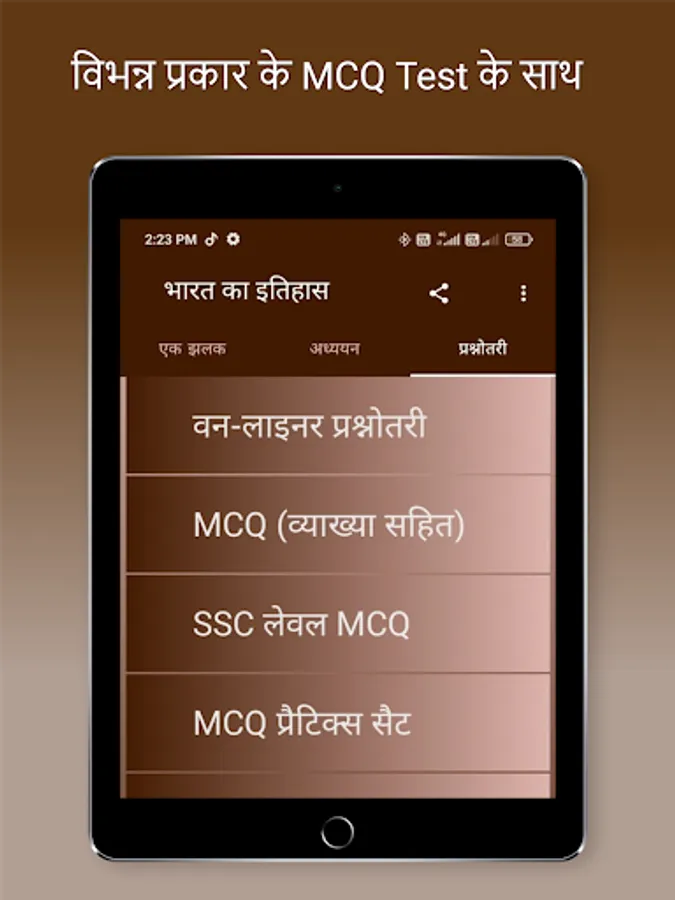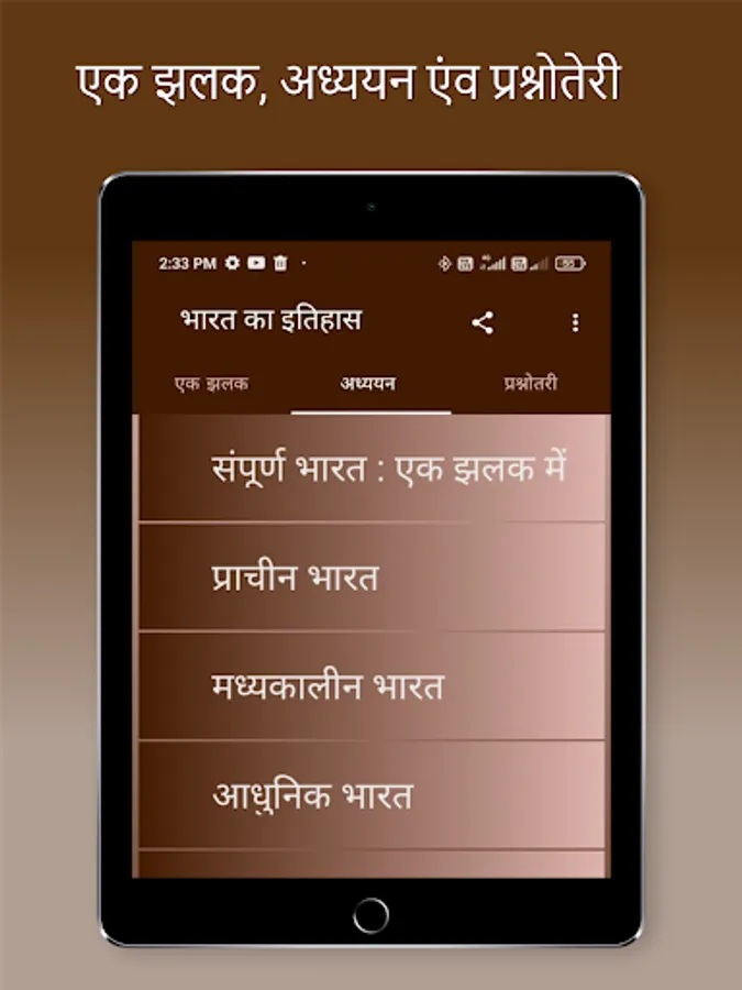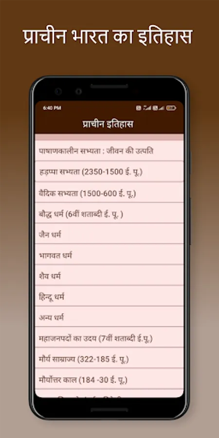 Indian History book in hindi in an app format are providing complete history meterials in hindi. This App Covers All the Topics of Indian History from the Ancient History, Medieval History and Modern History of India topic wise.