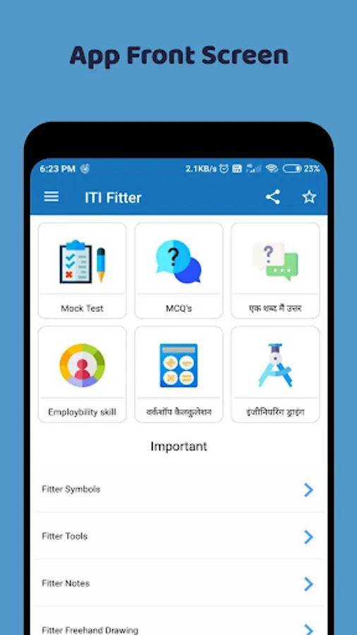 I.T.I. Fitter nimi app is a practice application for I.T.I Fitter Students. It contains some multiple choice questions ( MCQ ) of trade theory. Students can practice with this app on the go. It contains Yearly
