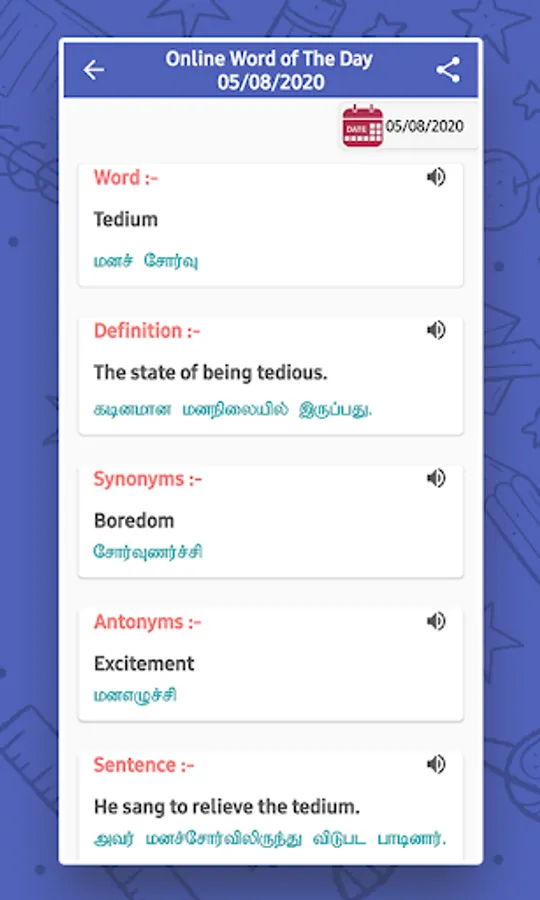 3. Free Tamil to English dictionary acts as Offline dictionary with many features.