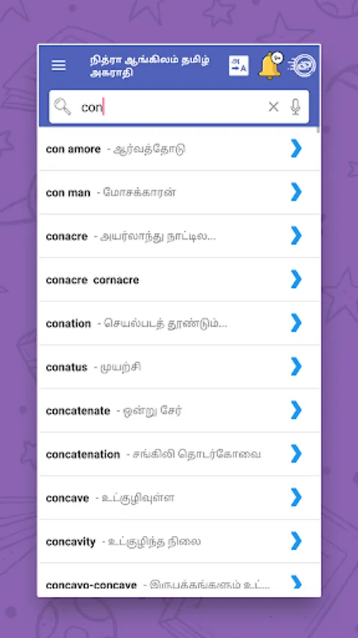 Nithra English to Tamil Dictionary has 100000+ English and Tamil Words & Meanings