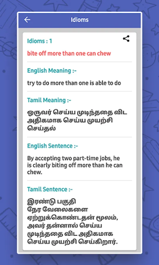 This English to Tamil Translator app is completely free dictionary useful for all English learners.