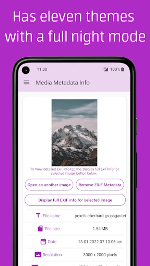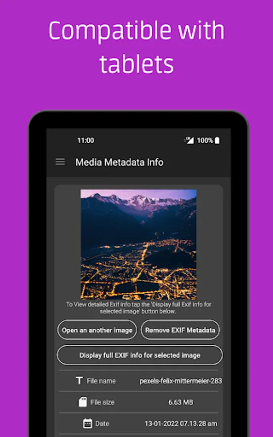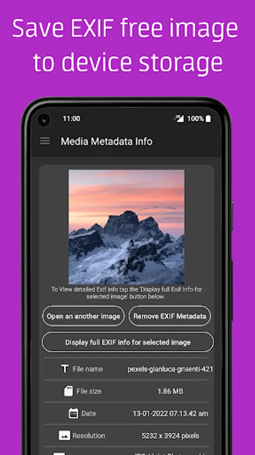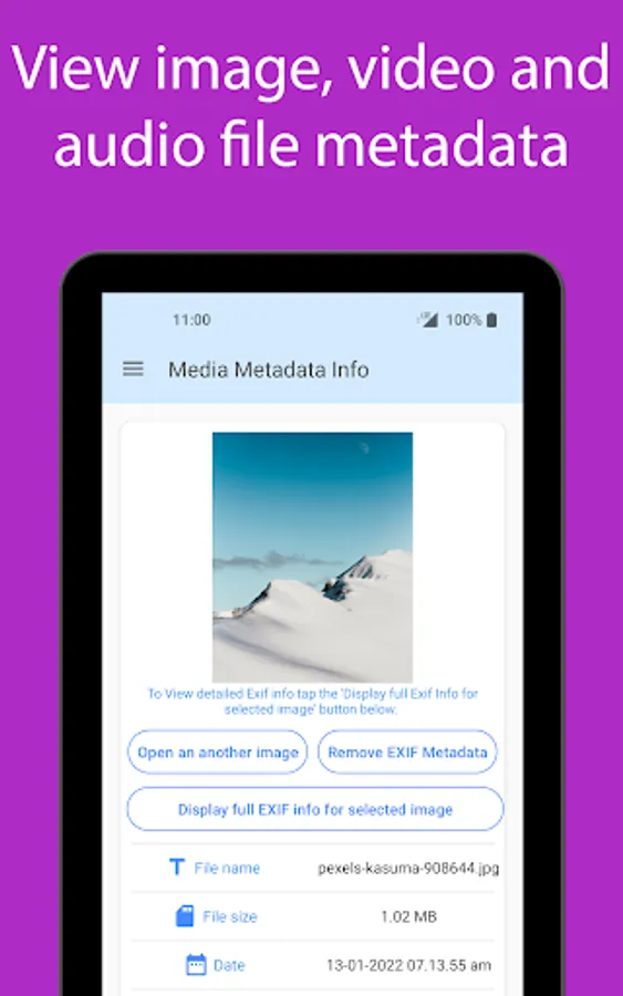 With Media Metadata Info, help protect your privacy by removing any EXIF metadata from your photos before sharing/uploading them. The app is built for Android mobile devices and has an optional in-app purchase.