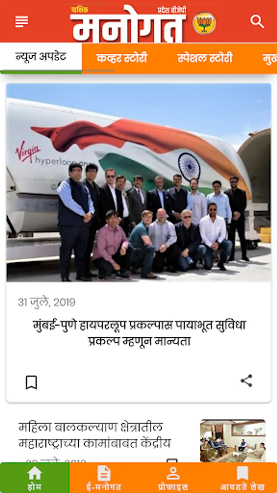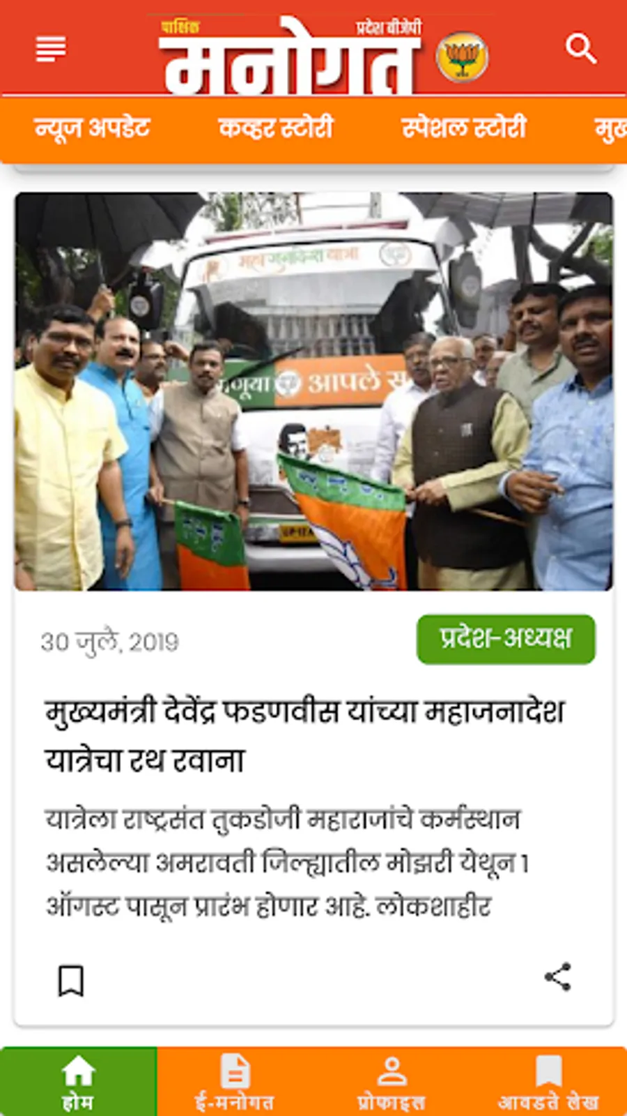 Manogat, the official fortnightly magazine of Bharatiya Janata Party, Maharashtra Pradesh