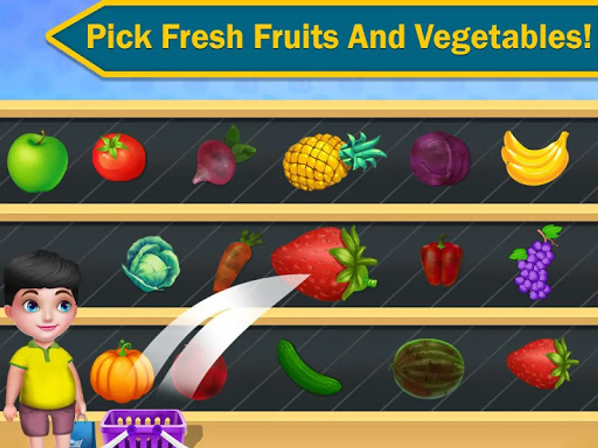 ✒ Avoid rotten, pick fresh vegetables and fruits. Collects fruits like apples, pineapples, orange, grapes, guava, banana, water-melon, papaya, mango, kiwi, apricots, peach, strawberry and vegetables like tomatoes, potatoes, brinjal, cucumber, beetroot, onion and more!