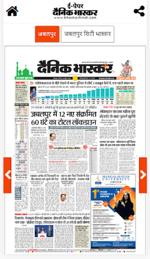 Dainik Bhaskar Hindi, India’s largest language media group, brings to you the most comprehensive Epaper App for Dainik Bhaskar Hindi. Dainik Bhaskar Hindi Epaper App keeps you up-to-date with daily newspaper on your device in digital format. We are currently present in 12 states having 68 Editions.