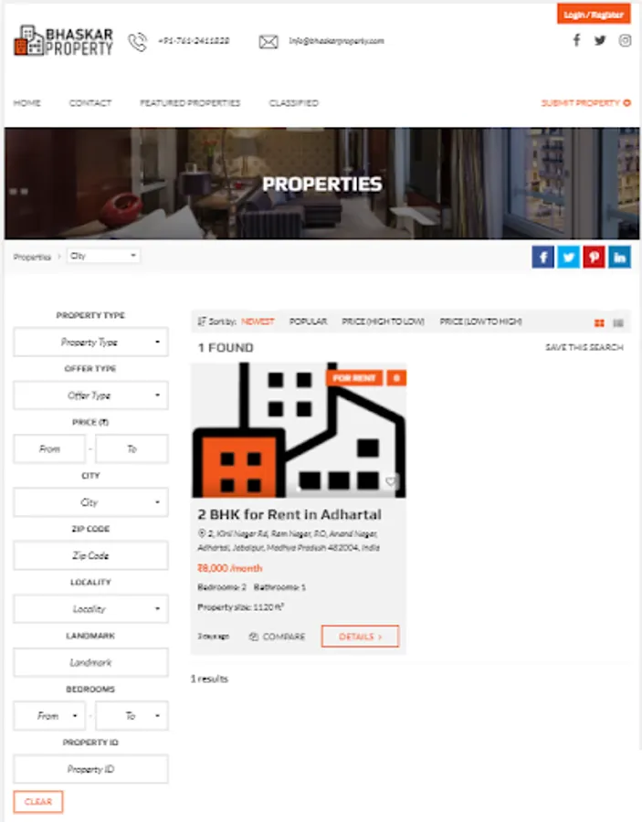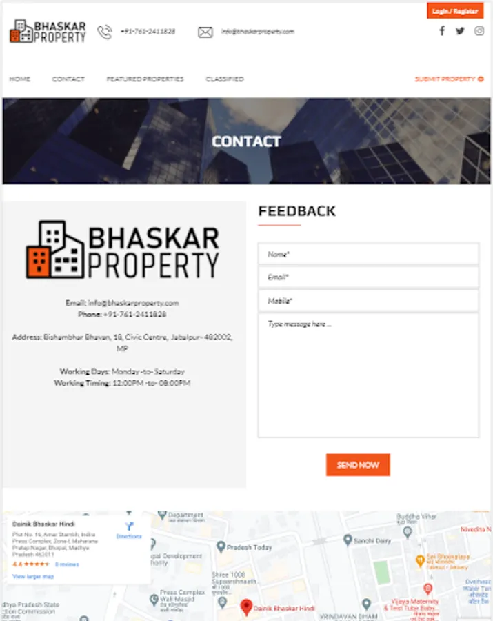 BhaskarProperty – Real Estate & Property Search in Jabalpur. Find your Dream home on BhaskarProperty.com. Bhaskar Property is the Jabalpur's #1 property site to help you find the perfect home. Be able to search thousands of available options for properties to buy and rent, from apartments to villas, townhouses, penthouses, compound, offices, and plots of land. Using Bhaskar Property App, you can search for Apartments, Villas, Residential Plots, Builder Floors, Row House, Farm House, Studio Apartments, and Service Apartments in Jabalpur.