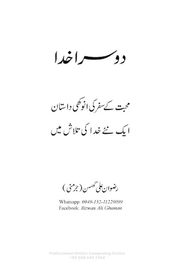 Rizwan ali ghuman belongs to a small villages of Bahawalpur and he has been living in various European countries for the sake of earning a living since 2007. Besides Urdu and English he has a strong command over Latin, Italian and German languages and he has written columns in various European newspapers and journals. In his novels there is an undeniable element of European society and culture.
