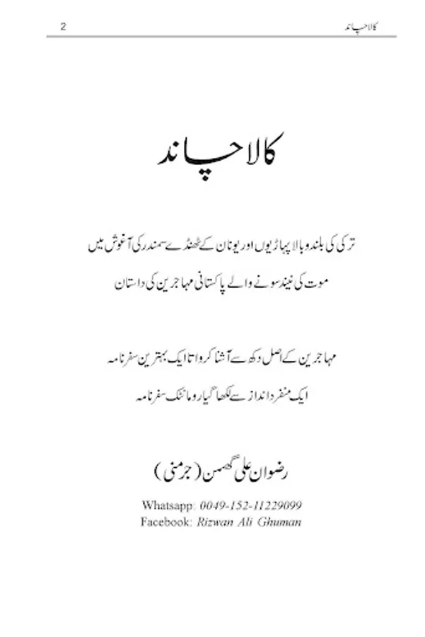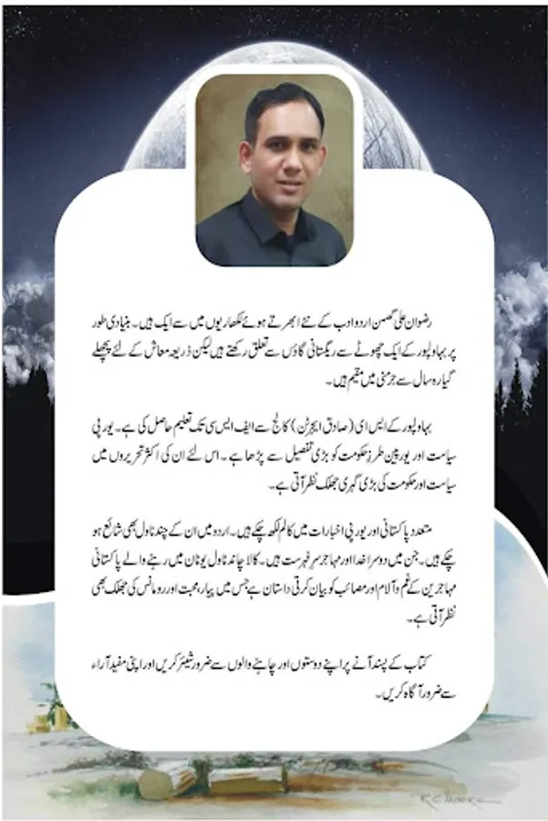 Rizwan ali ghuman belongs to a small villages of Bahawalpur and he has been living in various European countries for the sake of earning a living since 2007. Besides Urdu and English he has a strong command over Latin, Italian and German languages and he has written columns in various European newspapers and journals. In his novels there is an undeniable element of European society and culture.