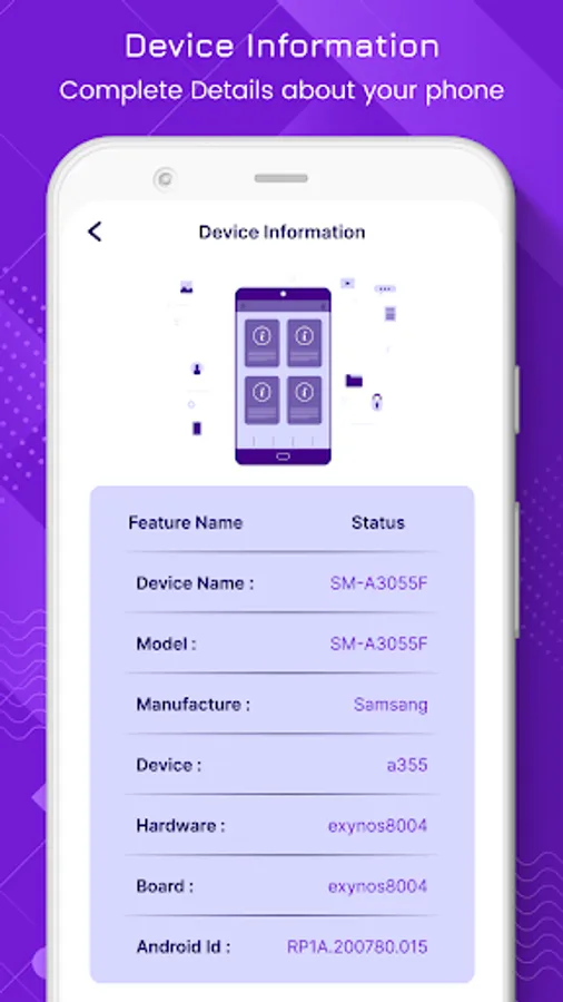 Device Information gives you information about your mobile device. It provides information like a Device name, Model, Manufacturer, hardware, Board, and Android Id.