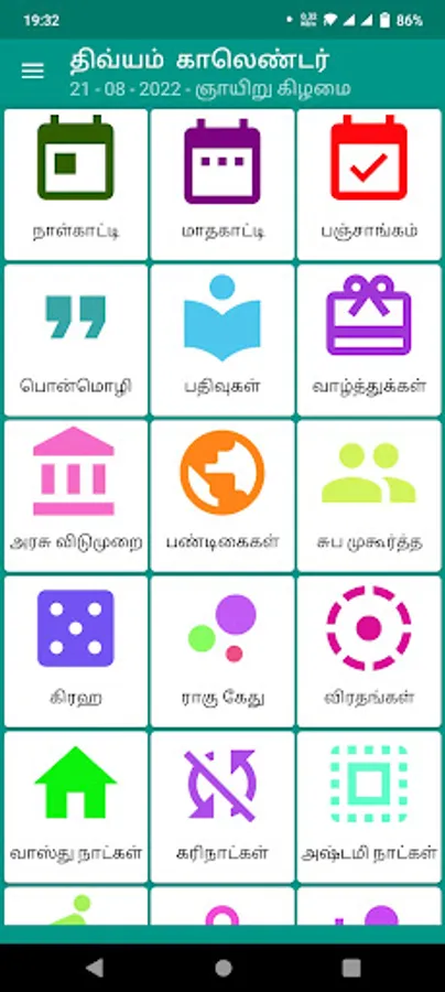 Introducing "திவ்யம் காலண்டர் - Divyam Calendar in Tamil", the easy-to-use Android app that brings you a comprehensive calendar and panchangam in the Tamil language.