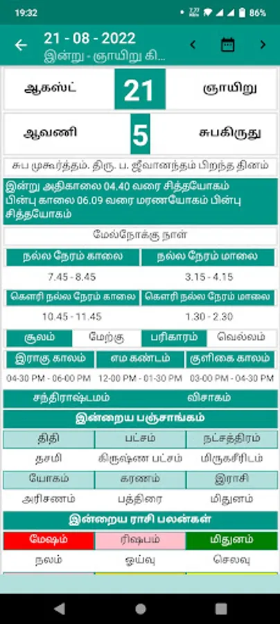 In addition to the calendar, "திவ்யம் காலண்டர்" also includes a detailed panchangam that covers a wide range of information, including sunrise and sunset times, rahu kalam, yamagandam, and more. Our app is designed to help you plan your day and make the most of each moment.