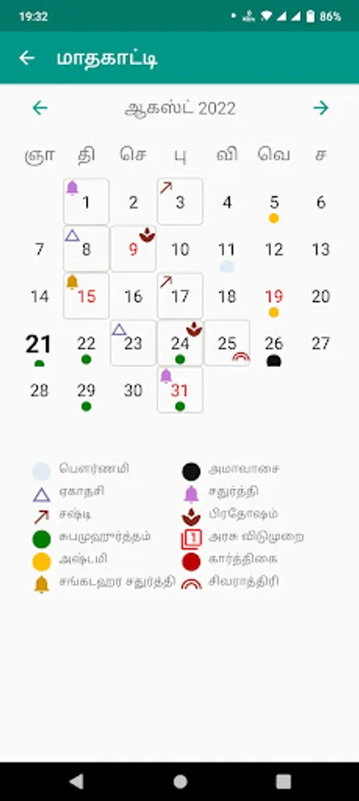 Whether you're looking for information about upcoming festivals or simply want to stay on top of your daily schedule, our app has something for everyone. So why wait? Download "திவ்யம் காலண்டர் - Divyam Calendar in Tamil" today and start exploring the rich traditions and culture of Tamil Nadu.
