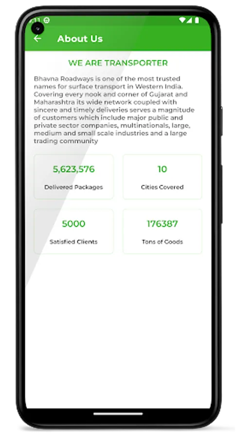Bhavna Trackdroid will allows you to track your consignment. Bhavna Roadways has grown substantially into a very trusted surface transport company in Western India. Customer service has always been the core importance in our quest for success. Headquarters at Surendranagar ( Gujarat ) and its Mumbai office at Masjid Bunder the company has over the years setup a strong and wide network of 75 own offices and 150 owned fleets in state of Gujarat and Maharashtra.