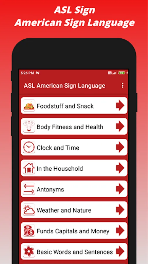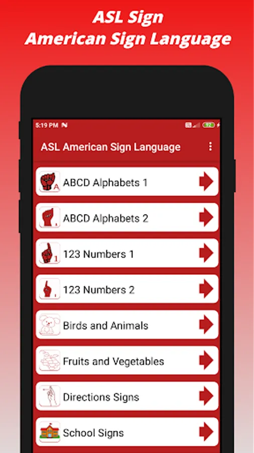 ASL American Sign Language App have been organized into various sections which start with basics such as alphabets and numbers to the advanced level.