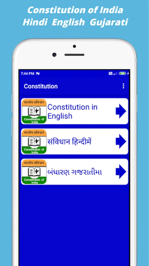 Constitution of India in Hindi, English and Gujarati App provides all this Topic Full Information