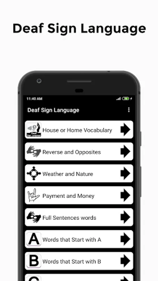 Deaf Sign Language App collections of Categories are below and provide all this Topic Like,