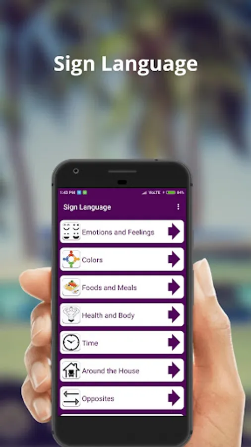 Sign Language App collections of Categories are below and provide all this Topic Like,