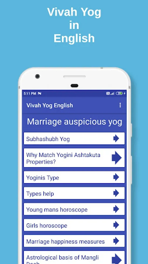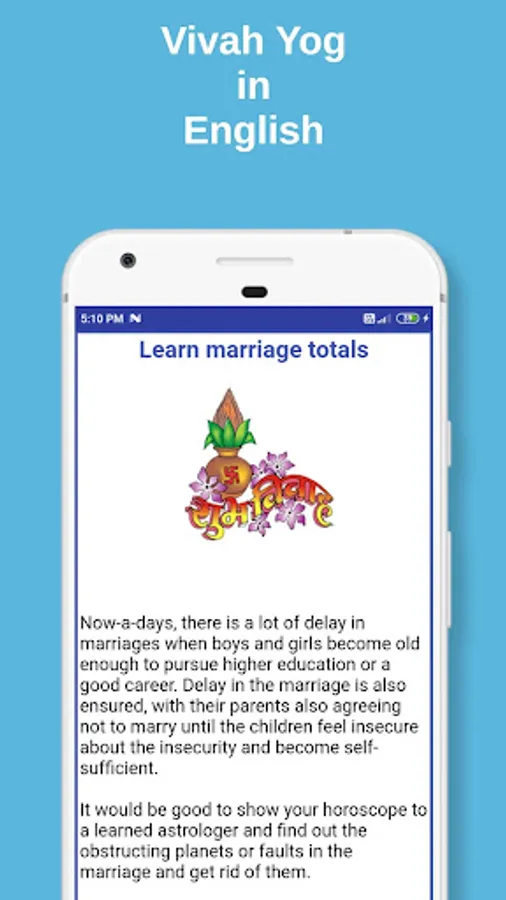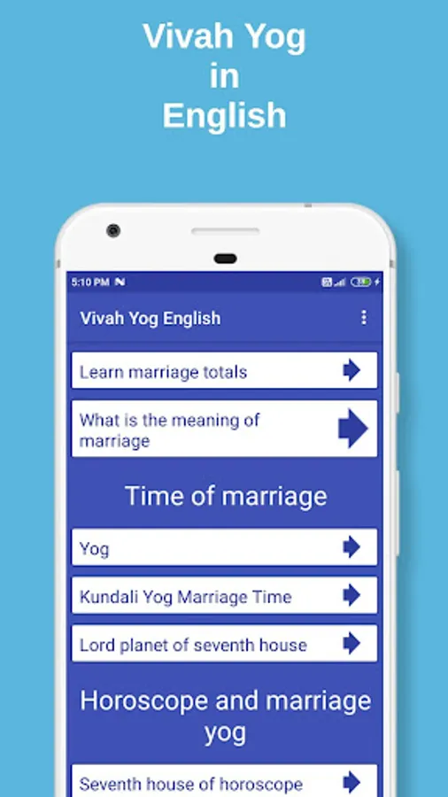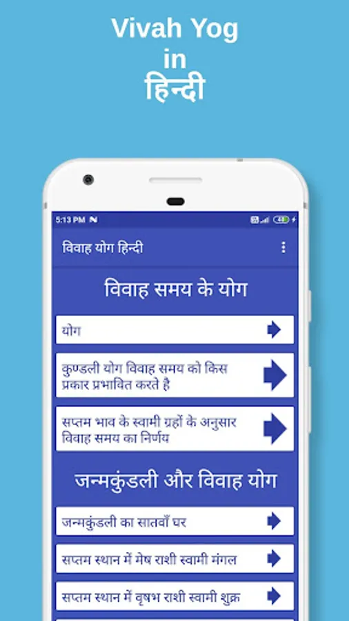 Vivah Yog App is also related of Meri shadi kab hogi, Vivah samay nirdharan.