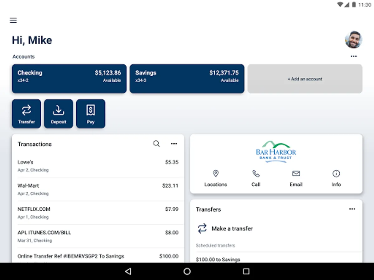 Contact: Locate ATMs or branches and contact Bar Harbor Bank and Trust customer service directly from the app.