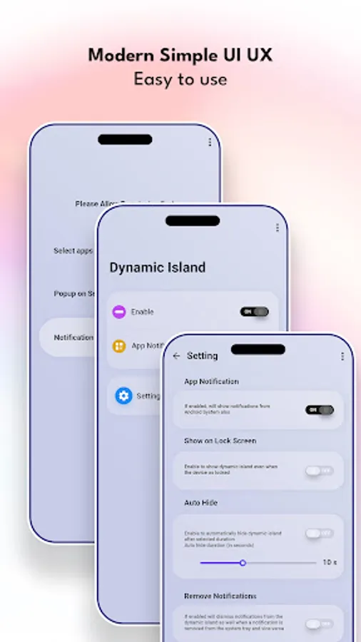 Dynamic Island Notch is smart notification bar. Dynamic Island can provide any Android phone with a notch or pill-shaped cut-out notch that turns into a notification bar. You’ll have your own Dynamic Island, you can choose and multitasking support for when you have several tasks running simultaneously.