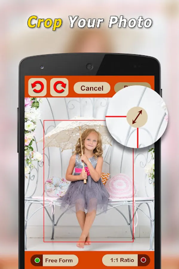 Image Editing - With this app you can edit the imported photo (from gallery or camera) and rotate, crop, zoom or move it until you're happy with it.