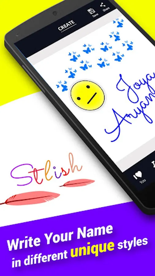 Stylish Name Maker is a magical app to generate stylish name card by using different calligraphic fonts with stickers, hearts, feathers and also love quotes messages & name tags. Various beautiful design to choose. Also has a feature of paint and magic brush which can be used as fingertip art to write your name or nickname in artistic way.