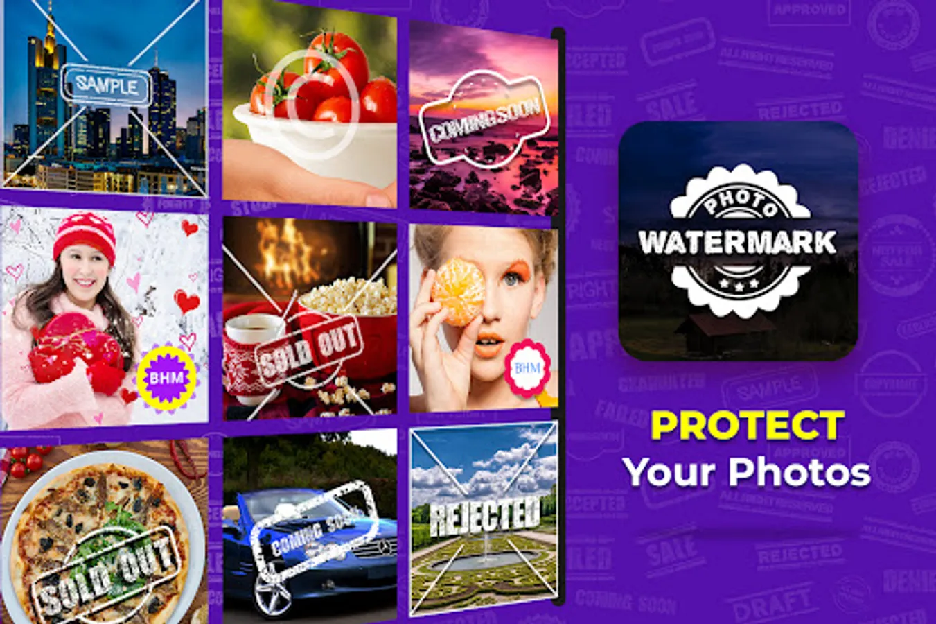 Easily create & put watermark on photo. You can adjust the size of watermark, transparency of watermark, rotate, zoom in & zoom out or move watermark until you are happy with it. If you have your own watermark, you can easily import from gallery & place it on your image.