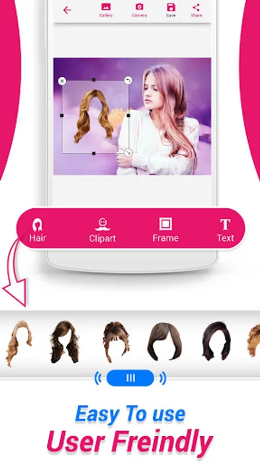 Hair Style for women and girl is unique photo editor app which allows you to edit any face with different Hair styles.