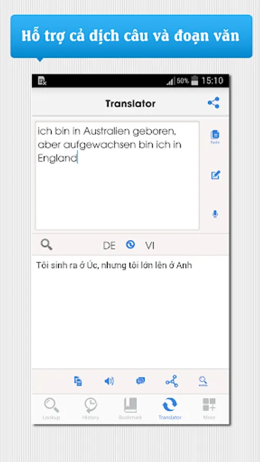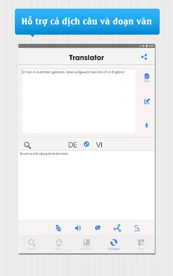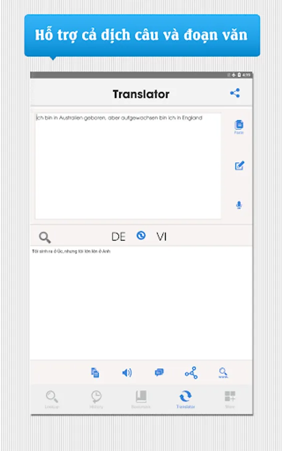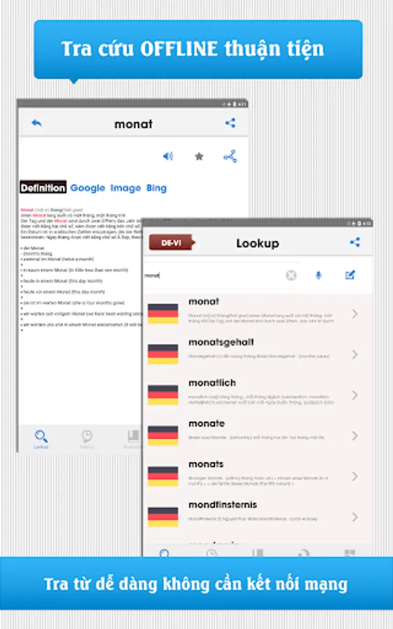 Vietnamese German dictionary lookup ultra convenient because there is still investigating an Internet connection from easy. Also, when a network connection, Dictionary also allows users to look up references in various online sites from different surveys.