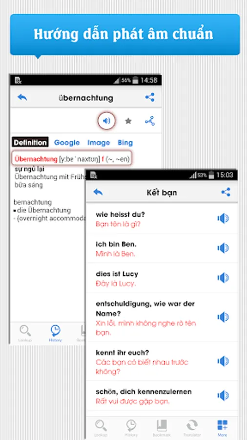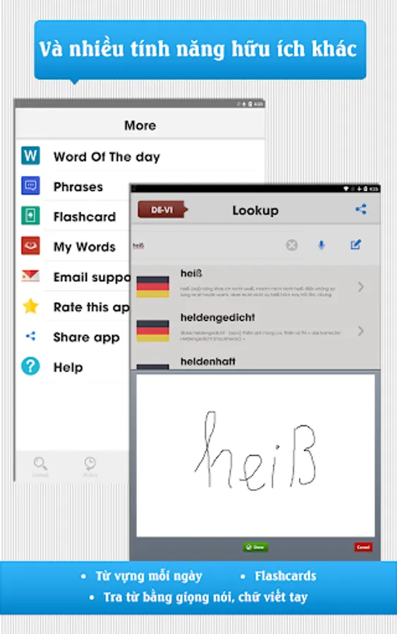 Especially, Vietnamese German Dictionary of BH Media maximum user support features from the investigation by drawing directly onto the touch screen extremely handy. Along try to use and explore the exciting features of Vietnam's German dictionary BH Media offline.