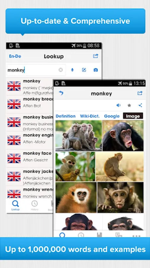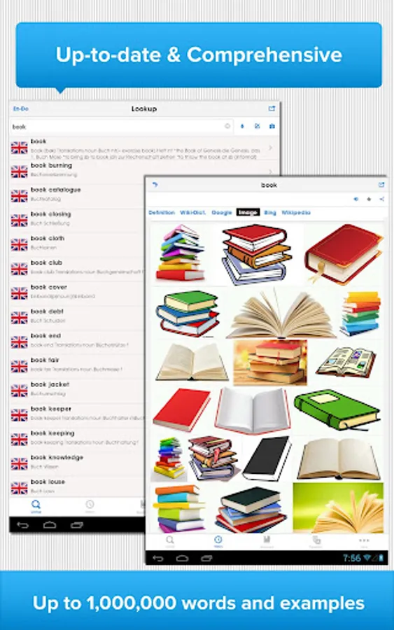 The most up-to-date and comprehensive English – German bilingual dictionary ►Huge database ►Up to 1,000,000 words and examples ►WORKS OFFLINE ► High-quality audio pronunciations ►Vocabulary training games, Flashcards and a lot more…
