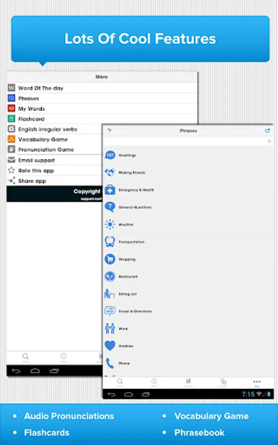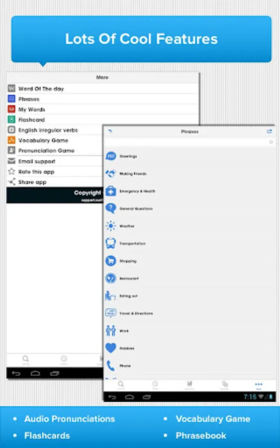 • Offline: look up words and listen to audio pronunciations without an Internet connection.