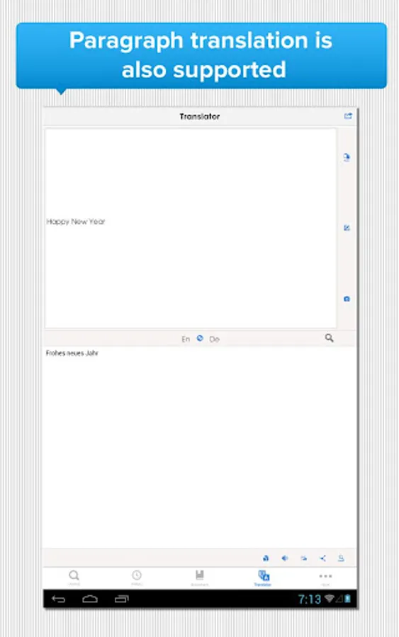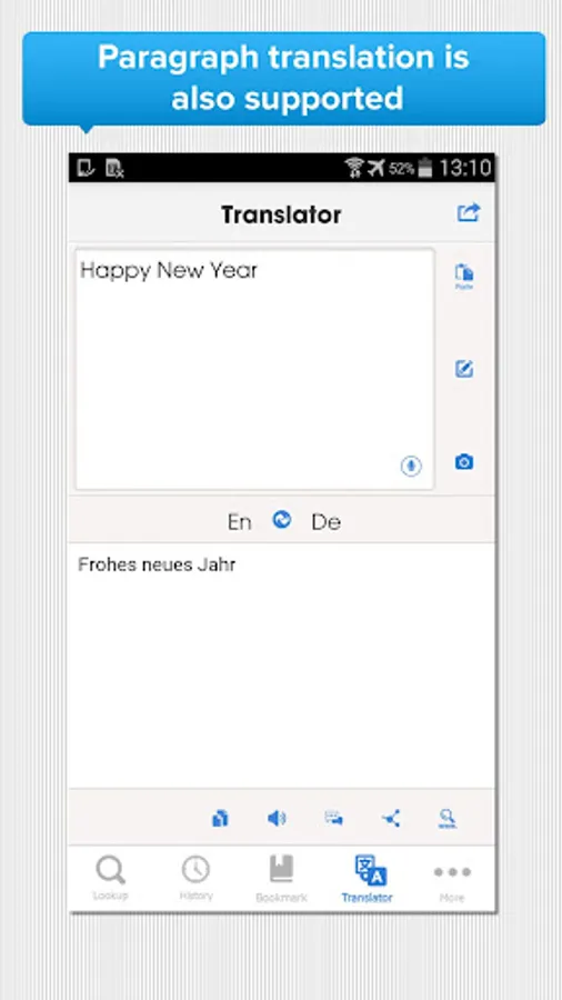 • Dynamic two-way lookup: Easily switch between ‘English => German’ and ‘German => English’ modes with just one click.