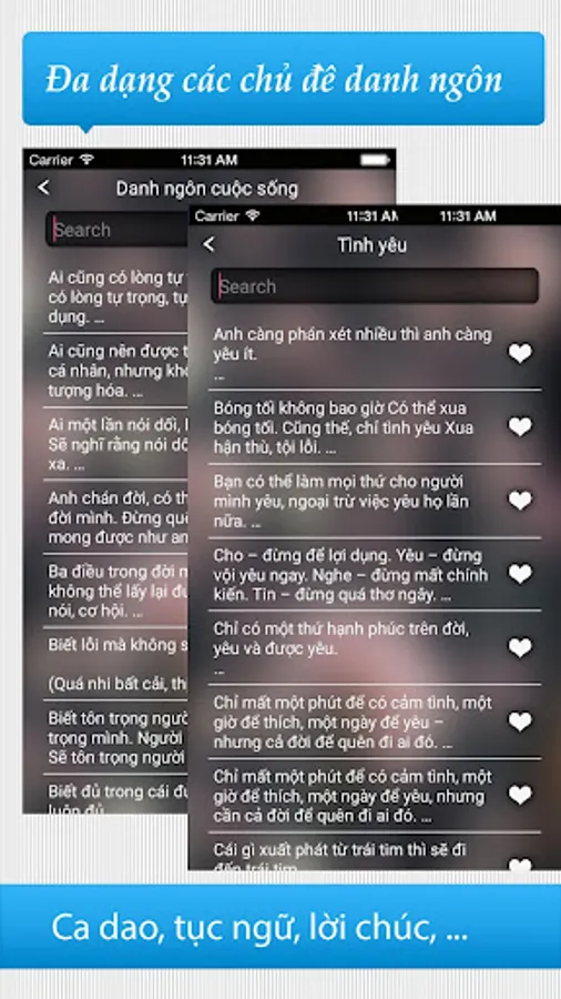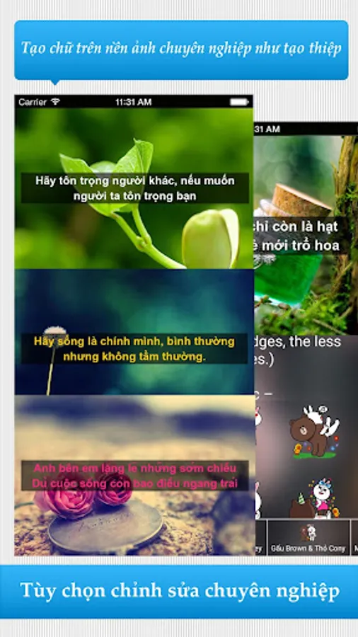 "Sayings or - text showed on pictures" is the best choice for you to store, share feelings and express the mood to friends and family and those around her. Still hesitate, and installation, to experience and evaluate the application immediately nhé!