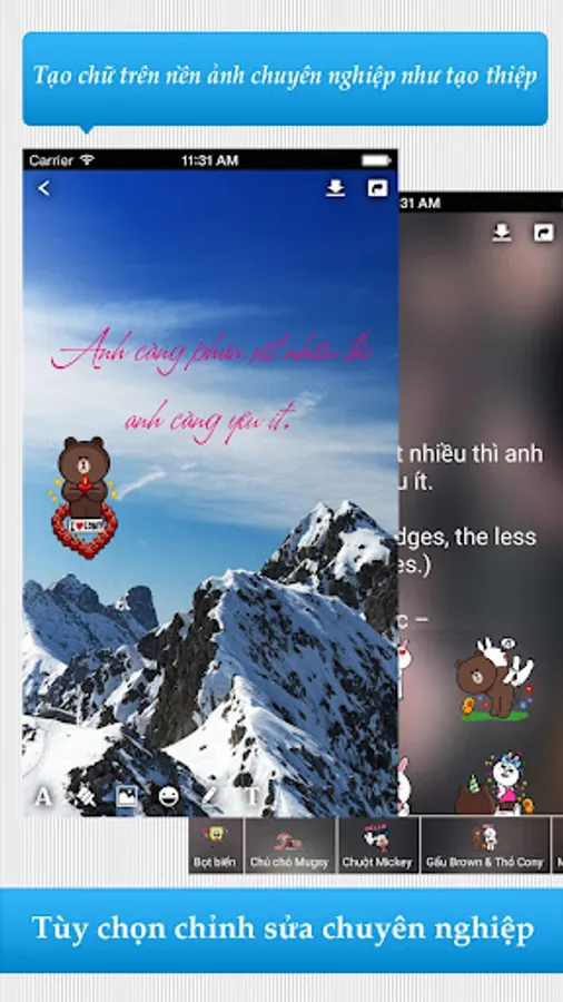 - Tools professional text editor: allows you to easily write text on photos, easily change the font, size, create nice effects to your liking.