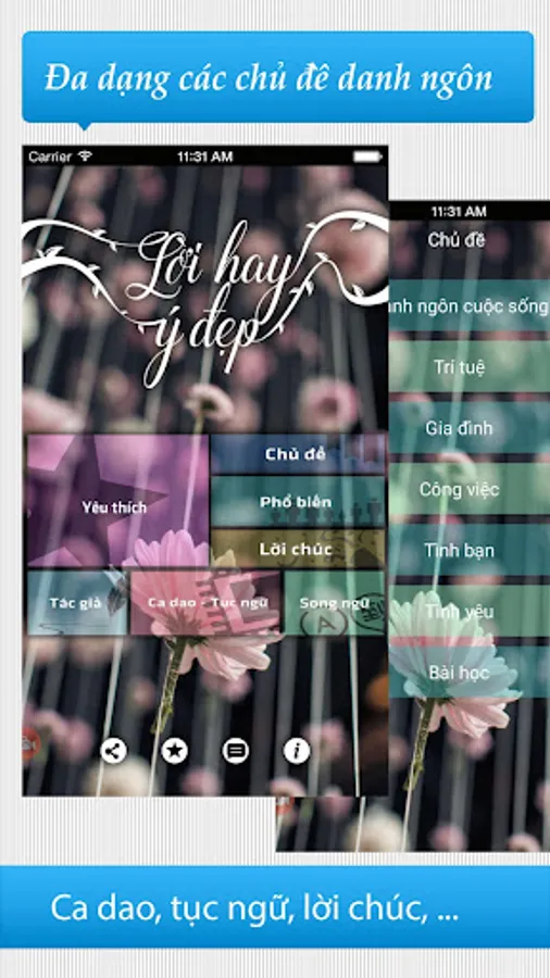 "Sayings or - his lapel wool cycle" is an application that synthesizes quotations immortal dictum, lessons, greeting meaning in life. Apps offer unique style, meet the new trend of youth, help your life more cheerful and happy.