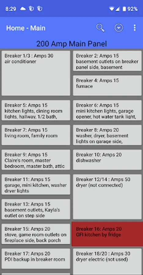 Next time you are wondering which breaker will turn off your kitchen lights, use the search function to see exactly which breaker to turn off.
