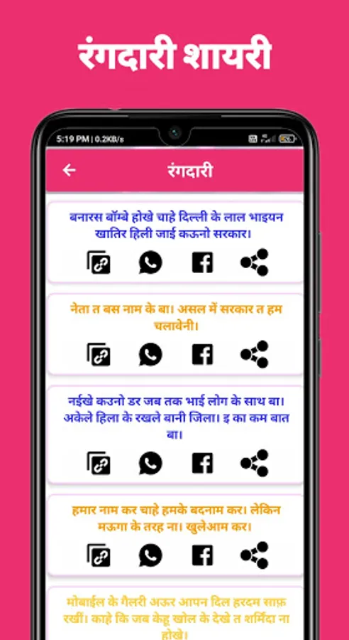 This beautiful app has latest collection of Bhojpuri status in Bhojpuri language.