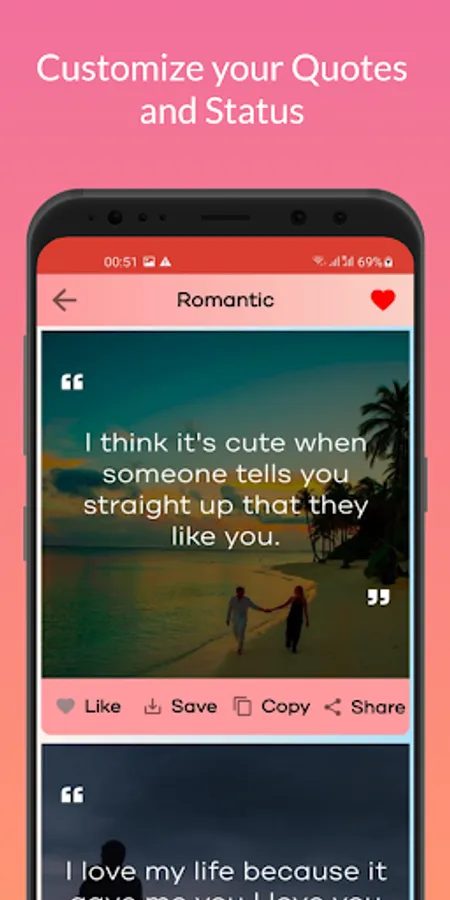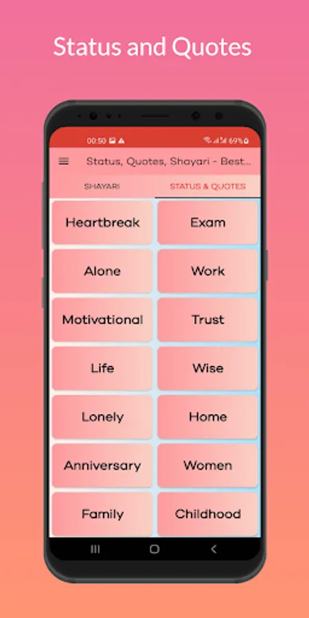 Best Quotes and Status is an app that provides large collection of quotes for different categories. There are more than 85,000 quotes and more than 100 categories.