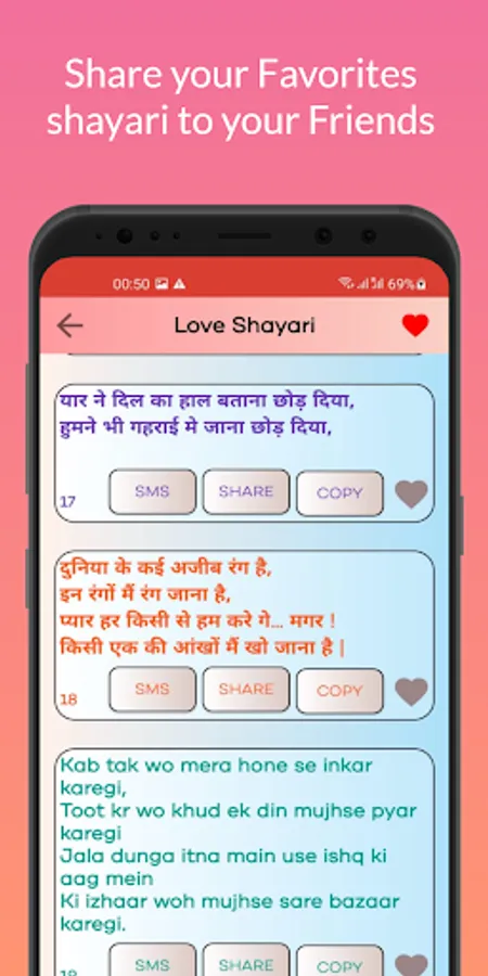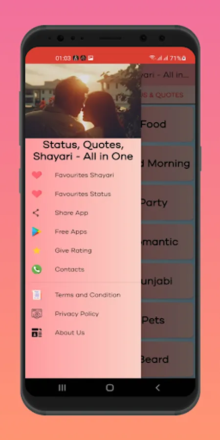 This is one of the nice collection of latest Quotes, Status and Shayari which is totally free and no internet connection required . Love is one of the important part of human life for share there feelings to some we must need a proper text which is attached by our emotion for that this is best and suitable app for you just use and share ultimate feelings .