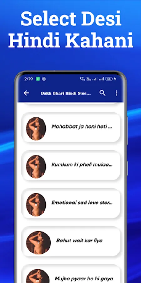This application has largest collection of all kind of Sexy Desi Hindi Story.