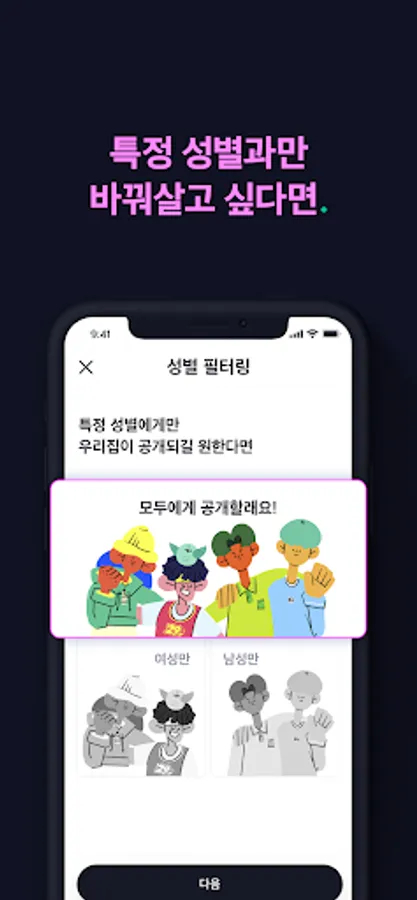 - 성별 필터링 (남여 모두/남/여)