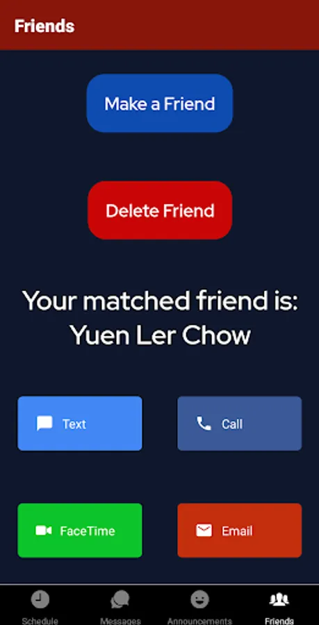 Friend finder: Our app enables you to make new friends! By clicking "Make a Friend" you are automatically paired up with the next BHS student who also requests a friend. Please note that your full name, phone number, and school email will be shared with your matched friend, so don't request a friend if you don't feel comfortable sending this information out. Because being paired with a teacher as a friend can be a bit awkward, this screen is only available for students with brooklinek12.org domain emails.