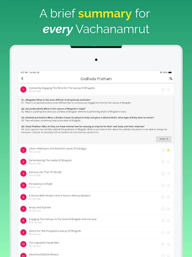 The Vachanamrut Learning App contains easy-to-use features such as: