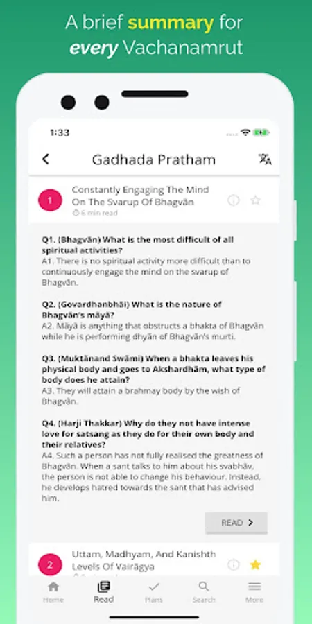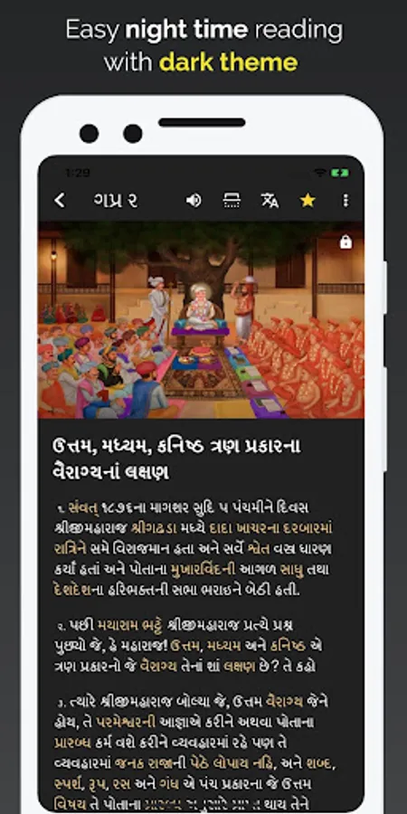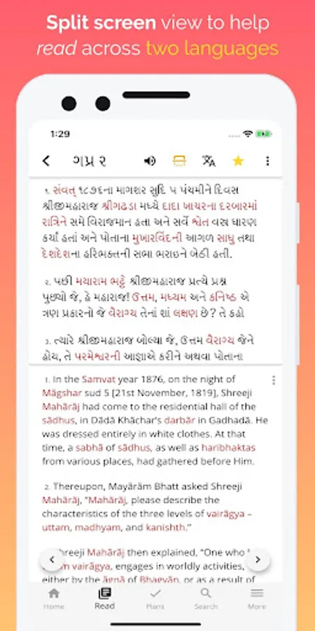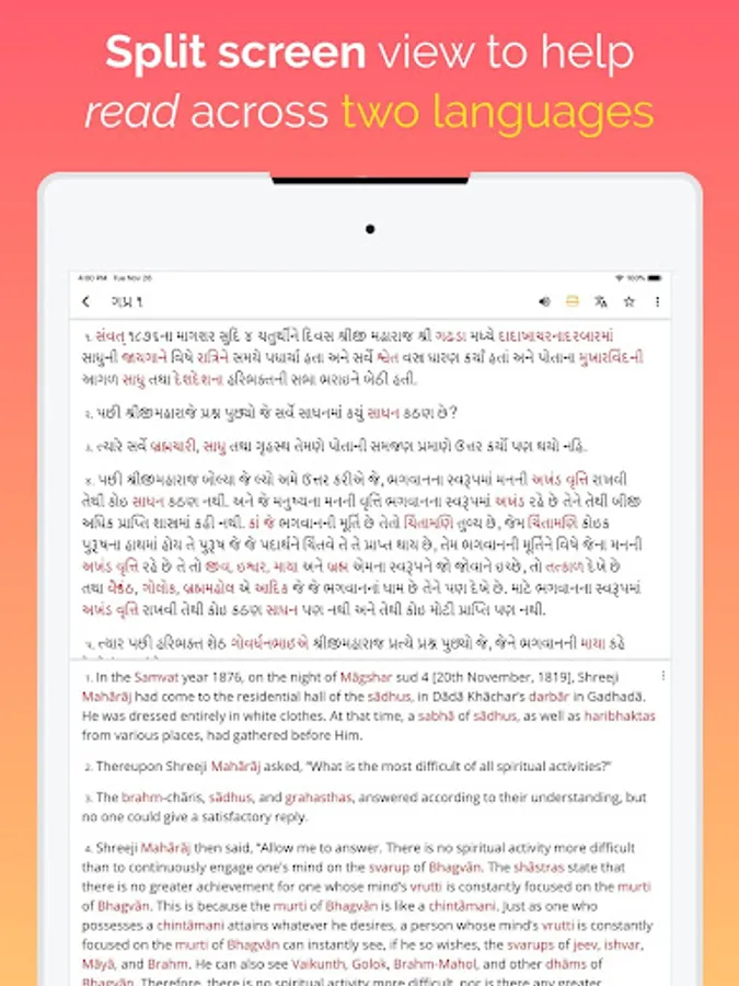 Read the same Vachanamrut in 2 different languages. Great for those who are learning Gujarati or those who are having difficulty pronouncing difficult words.
