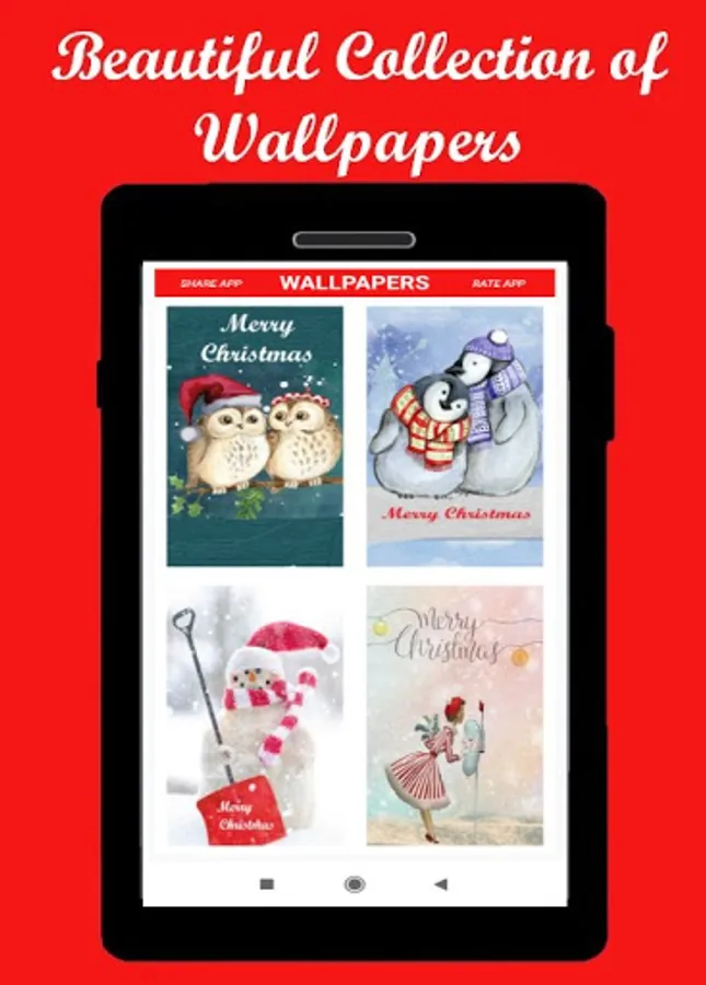 This offline app contains high definition Christmas wallpapers. The collection of amazing Christmas wallpapers can also be shared as picture messages to friends and family.