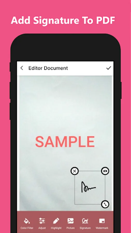 It not only works as a document scanner app but also lets you insert your signature into the document
