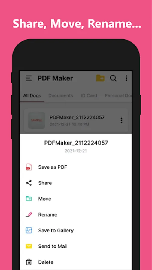 With PDF Maker app you can share your files easily with friends, colleagues or anyone you want