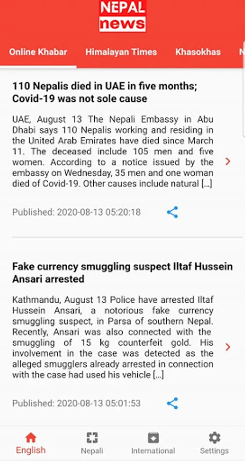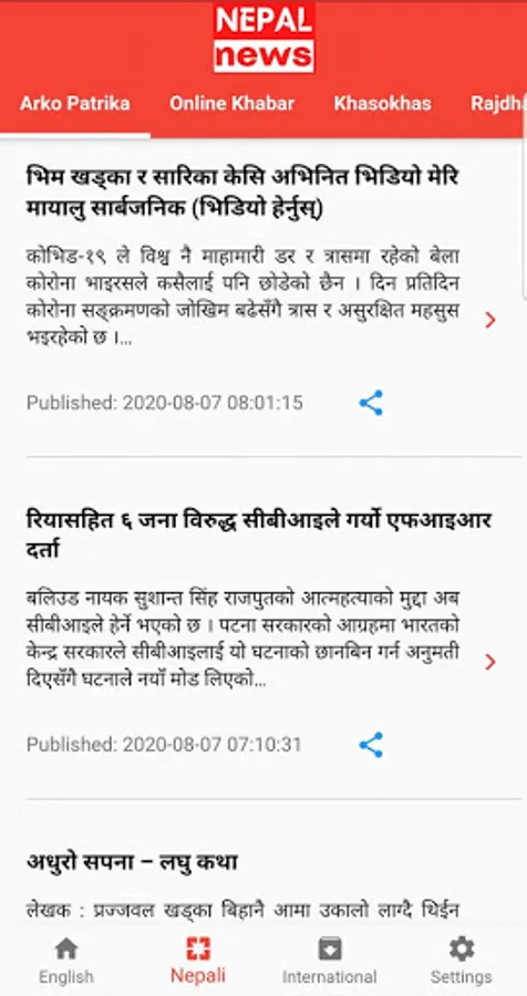 Nepal News App brings you the latest news of Nepal. You can read the news in both the English or Nepali language. We also provide news from international news sources.